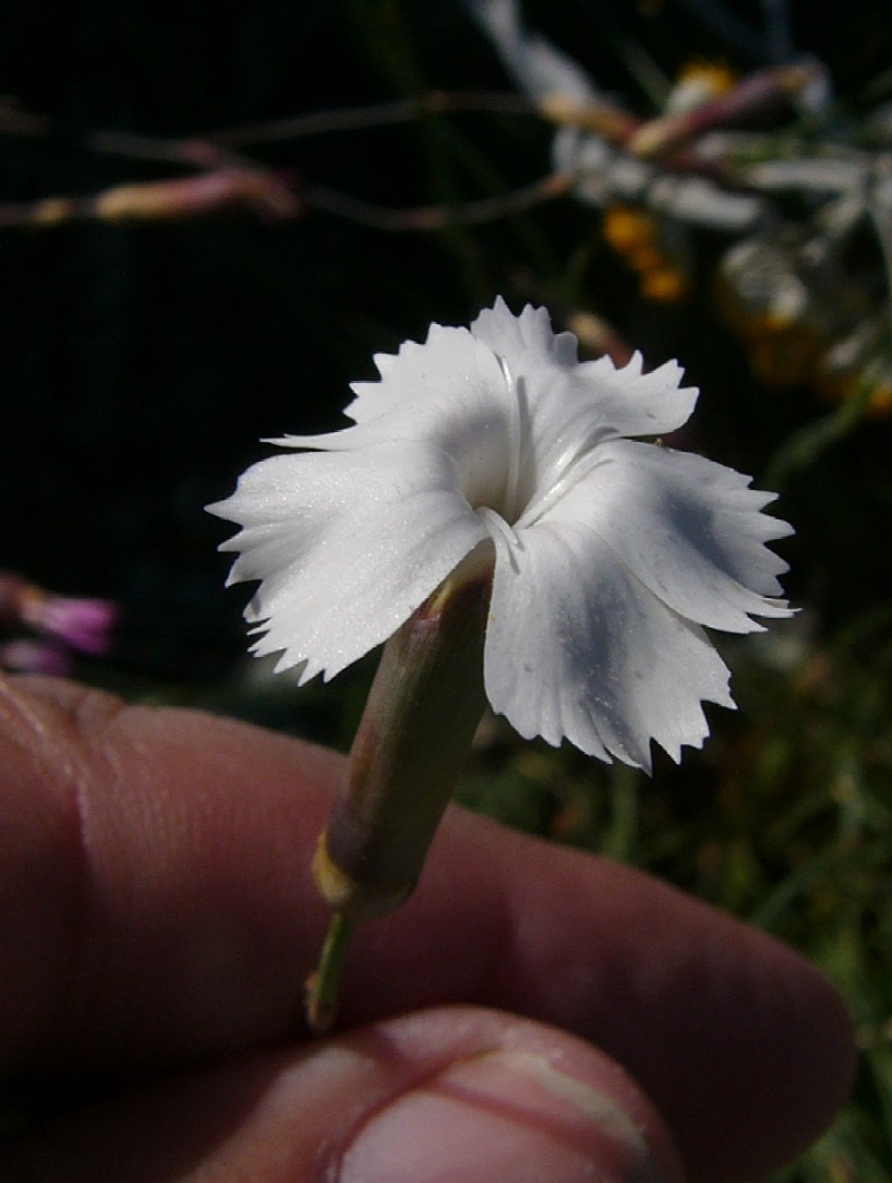 Synonyme: English name: Nome italiano: Weltweite Verbreitung: Dianthus brachycalyx unterscheidet sich nur in einigen Größenangaben von Dianthus sylvestris. Exemplare von Dianthus sylvestris in höheren Gebirgslagen sind wie Dianthus brachycalyx zierlich und einblütig.
