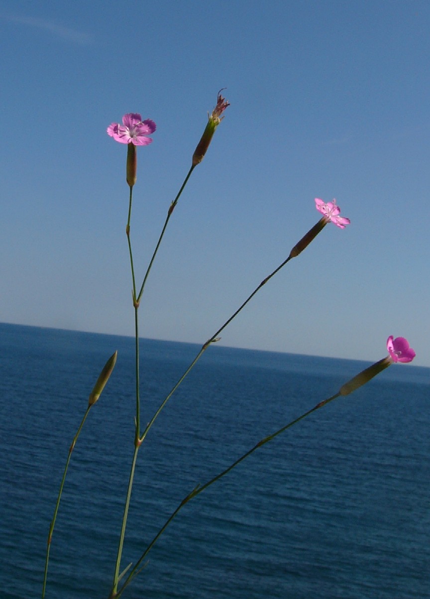 Dianthus - Pflanze krautig, Blüten rosa oder rot, Kronblätter schartig, nicht punktiert, Blätter schmal