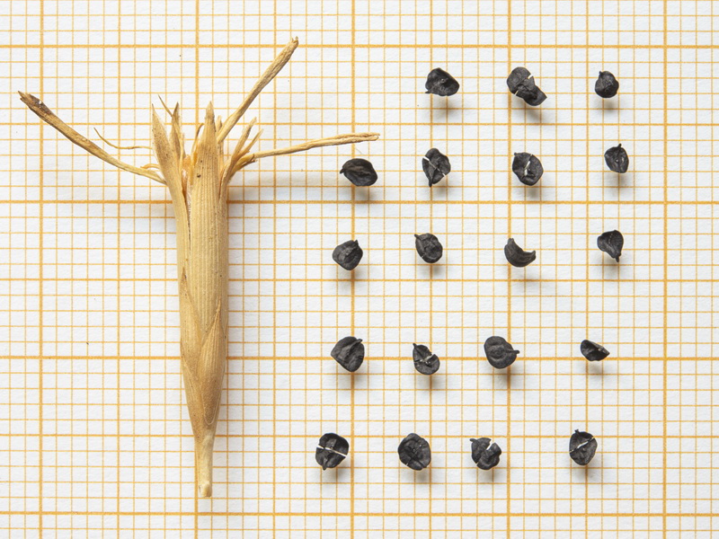 Samen abgeflacht, schwarz, ca. 2 mm im Durchmesser