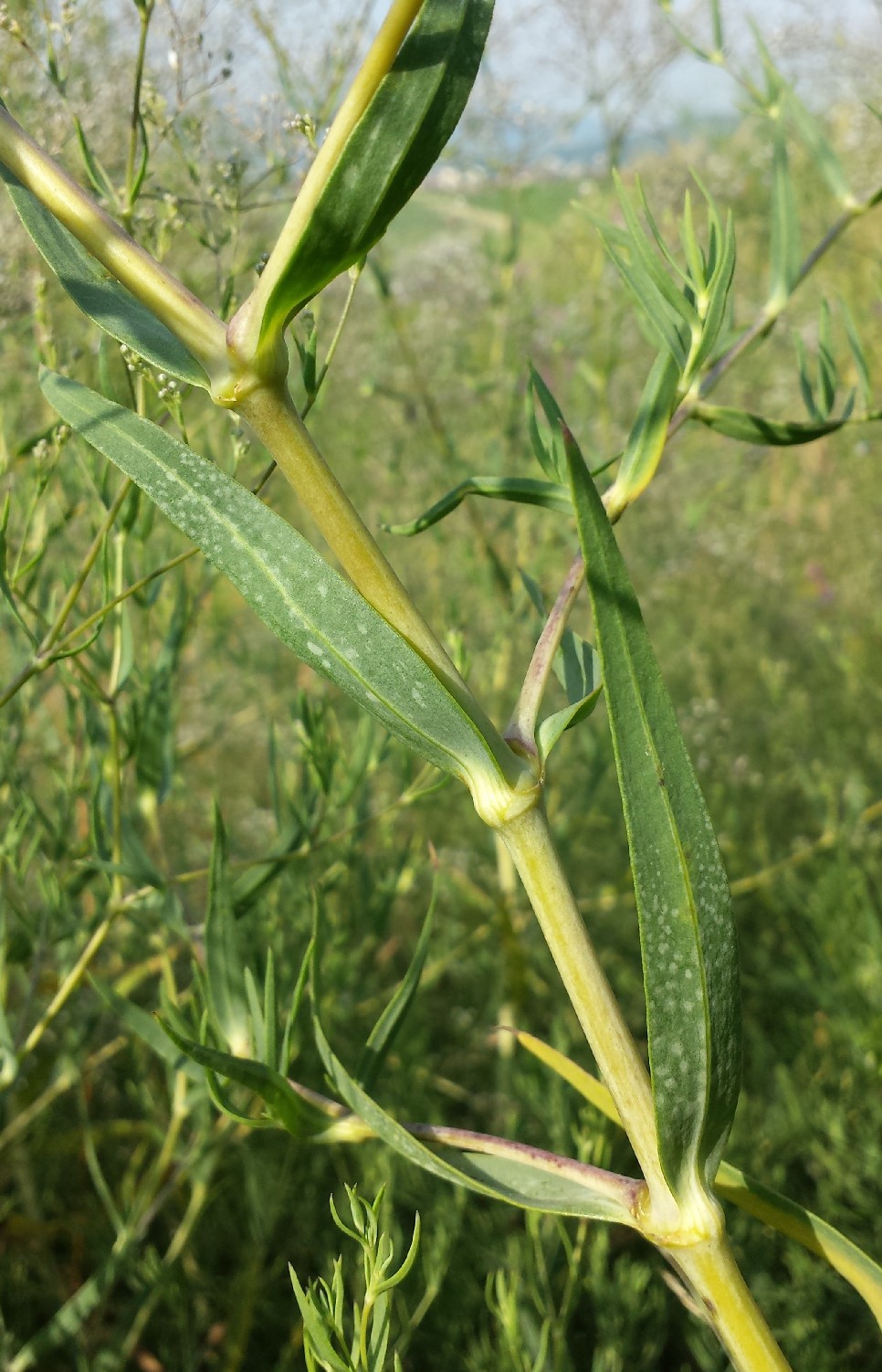 Stängelblätter kahl, 2 - 10 mm breit, manchmal undeutlich 3- nervig, vorne spitz