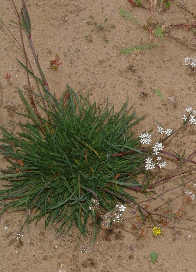 Grundblätter rosettig, 20 - 80 mm lang, 1 - 5 mm breit, einnervig