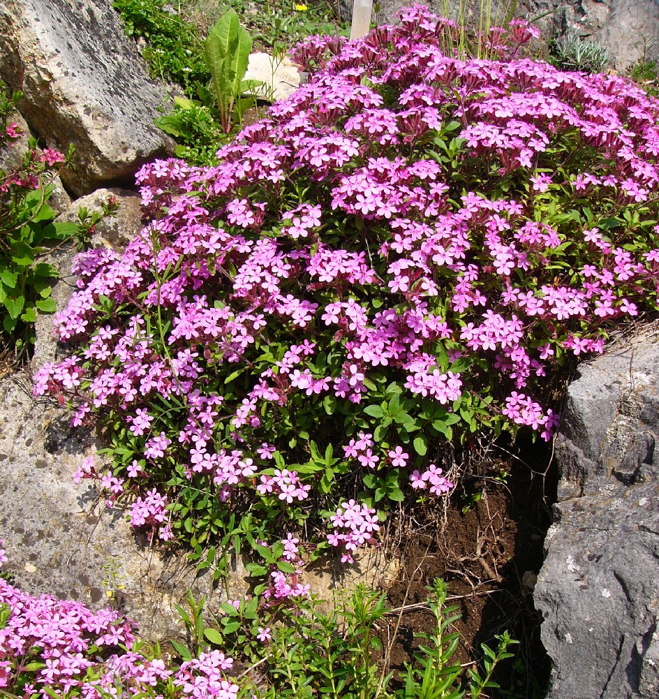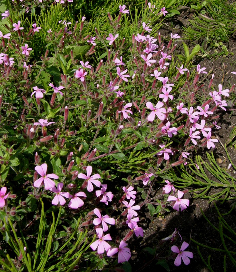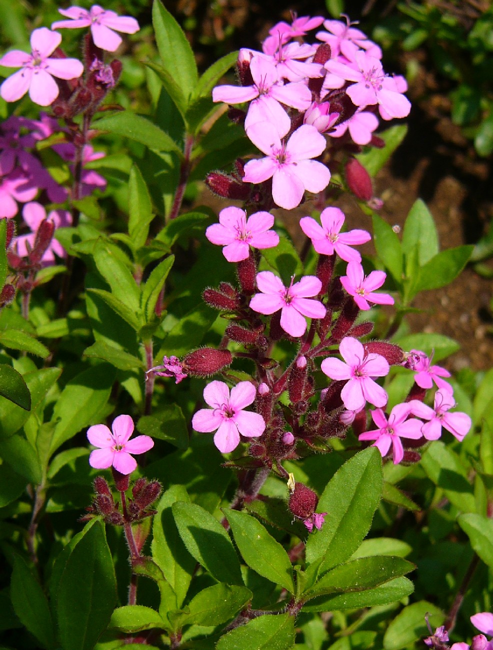 Saponaria - Blüten rosa oder rötlich, Blätter eiförmig- spatelig, grün, einnervig