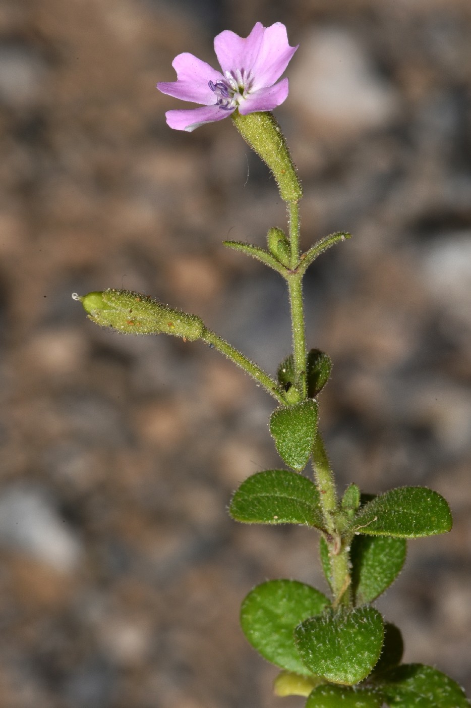 Kronzipfel ca. 4,5 mm lang, rosa, am Grund heller, deutlich ausgerandet, Anthere blasslila, deutlich aus der Kronröhre ragend Kelch keulenförmig, 8 - 11 mm lang, Kapsel kaum länger als das Gonophor