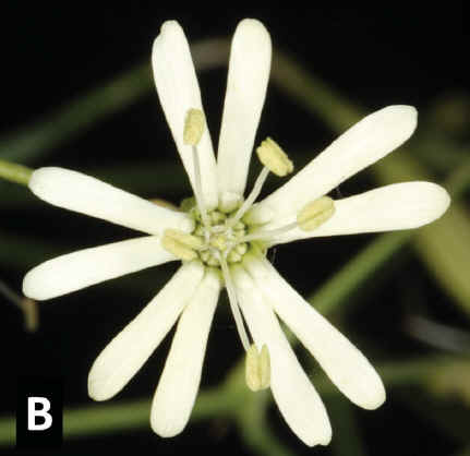 Stängel mit 3 - 4 Paar Blätter, die nach oben kleiner werden Stängel im oberen Teil kahl, im unteren Teil mehlig- papillös, nur die Nodien drüsig Blätter schmal-linealisch, 15 - 60 mm lang, 0,3 -