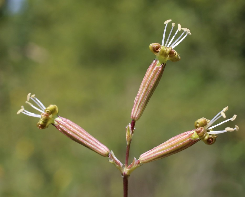 Silene - Blüten beiderseits gelbgrün, Kelch kahl, walzlich, 9 - 12 mm lang