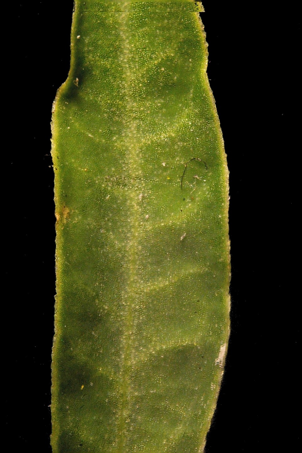 Blätter mit Spaltöffnungen (weiße Punkte) entlang des Hauptnervs und der Seitennerven