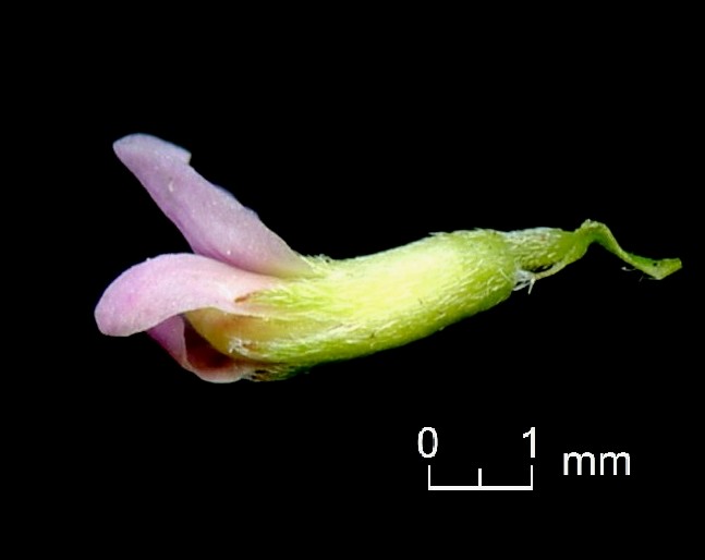 Kelch 2 - 2,5 mm lang, angedrückt seidenhaarig, mit ungleichen Zähnen