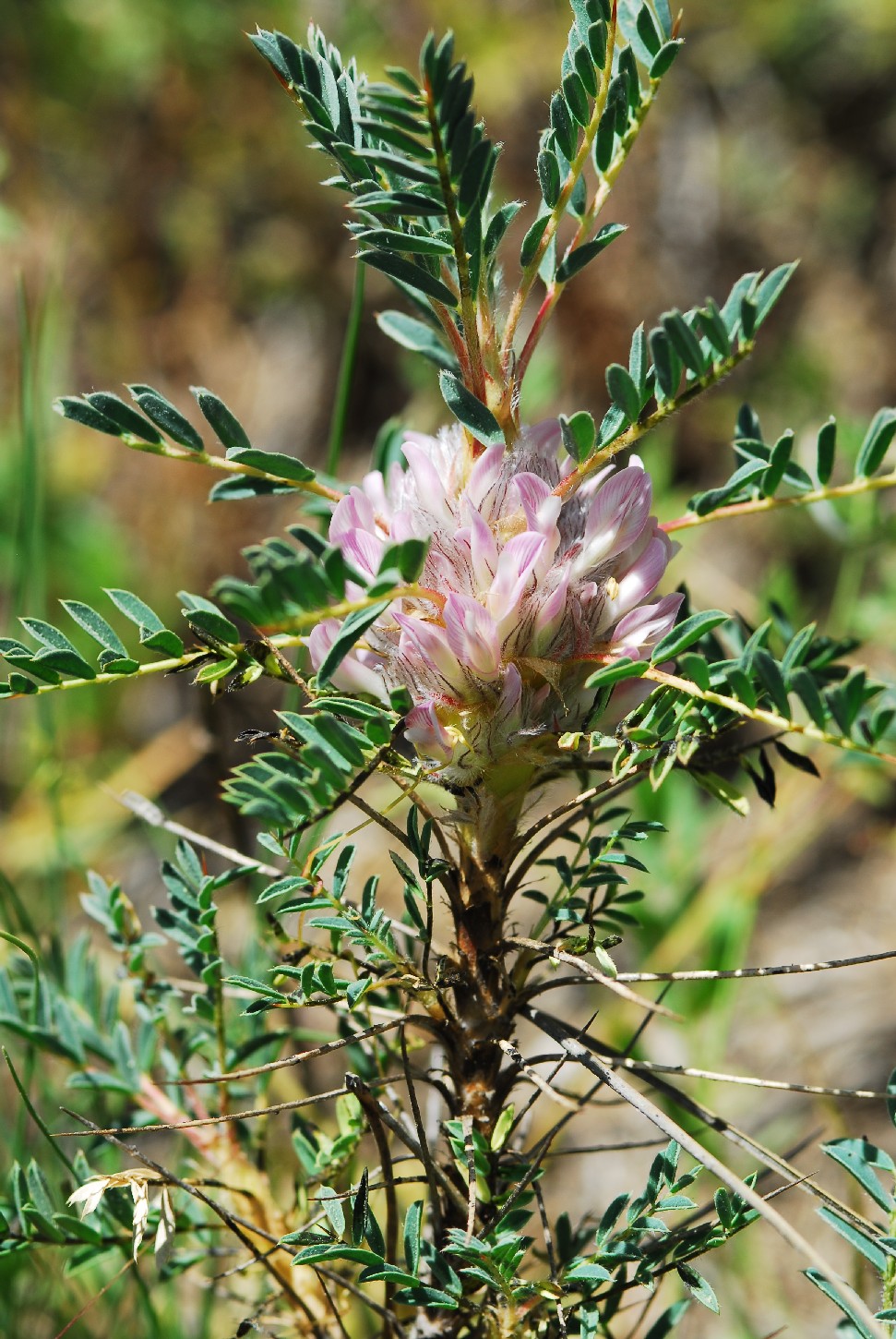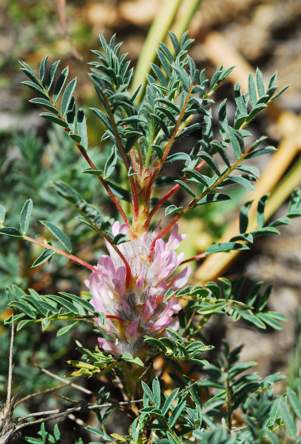 Stängel holzig, dicht mit den dornigen Mittelrippen der vorjährigen Blätter besetzt