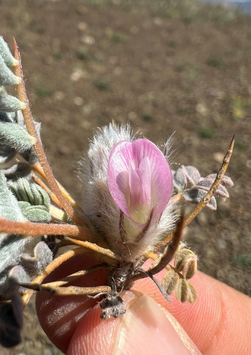 2 Verbreitung im Gebiet: Südpeloponnes, Blüten hellrosa, Blättchen graufilzig oder dicht seidig behaart