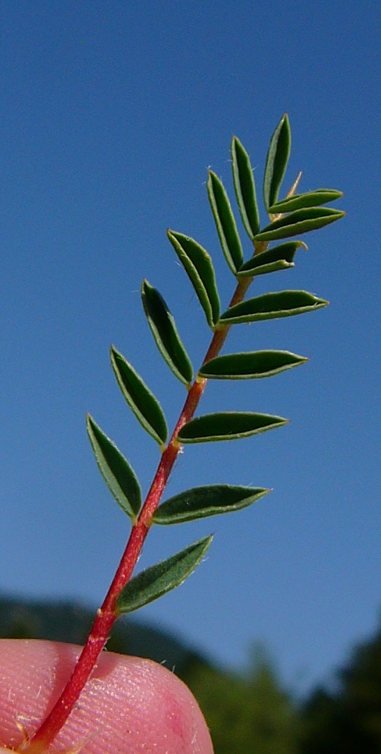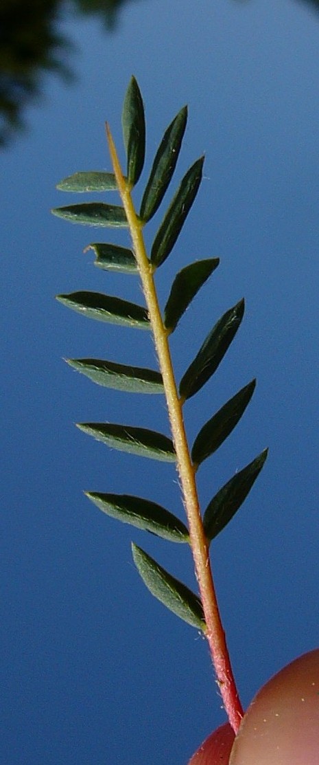 Blätter 15 - 70 mm lang, paarig gefiedert, mit 5 - 8 Fiederpaaren und endständigem Dorn