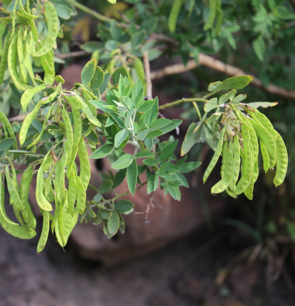 Früchte 40 - 50 mm lang, 9 - 12 mm breit, gekrümmt, kahl