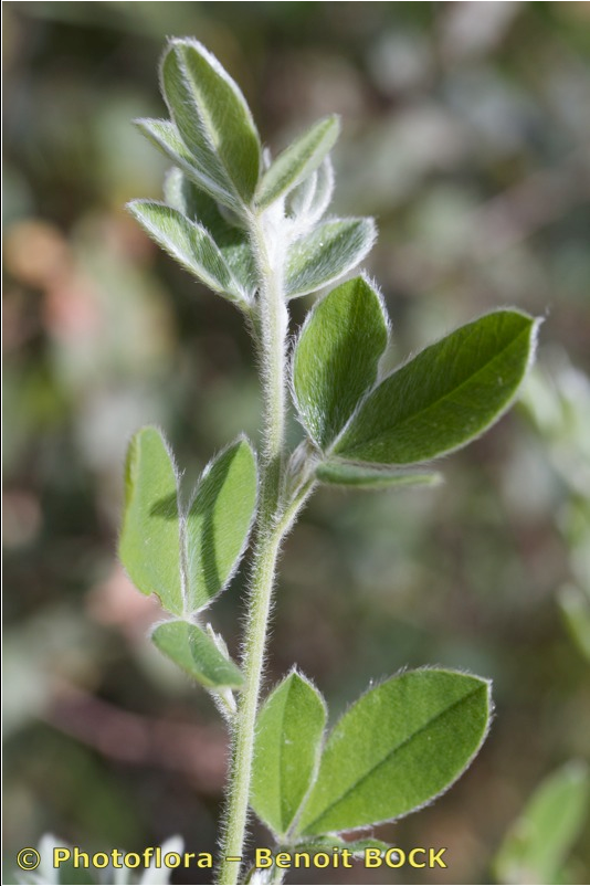 | Endemit in Frankreich (Alpes Maritimes, Hautes- Alpes, Isere, Drome) Niederliegender Zwergstrauch (20 - 70 cm hoch) Zweige deutlich gerillt Mittleres Blättchen 9 - 12 mm lang, kaum größer als die seitlichen > 1