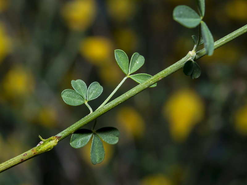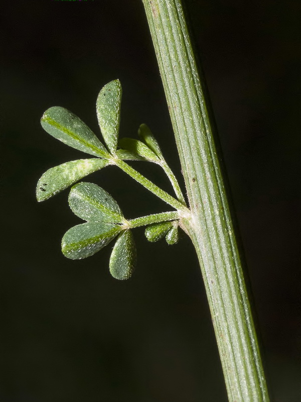 Obere Blätter oft einteilig oder in sitzenden Büscheln, untere Blätter 3- teilig, 1 - 10 mm lang gestielt, Blattstiel behaart, Blättchen elliptisch 3 - 8 mm lang, 2 - 4 mm breit, obersseits kahl, unterseits seidig behaart, alle Blättchen +/- gleich