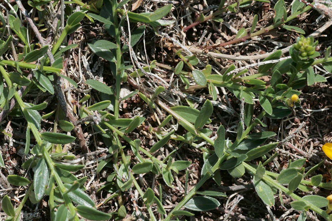 2 Pflanze niederliegend, 10 - 15 cm hoch, Blätter 2 - 4 mal so lang wie breit, Hülsen behaart