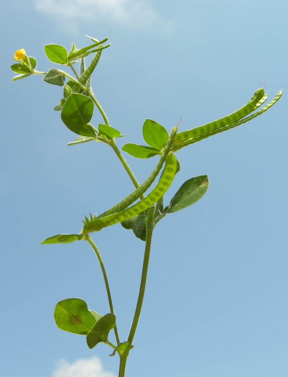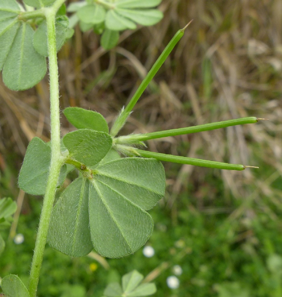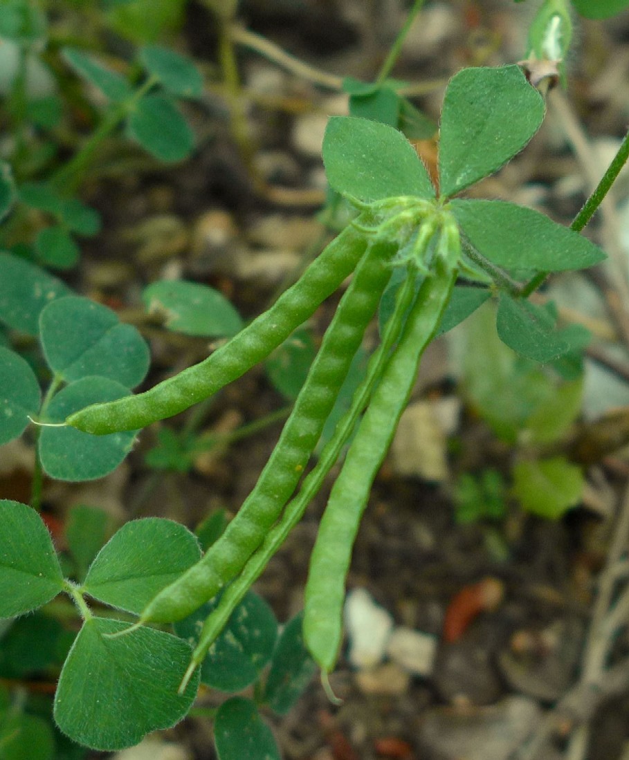Hülsen rundlich, 10 - 30 mm lang, 1,5 breit Blätter mit 5 Blättchen, wobei die 2 unteren ca. so