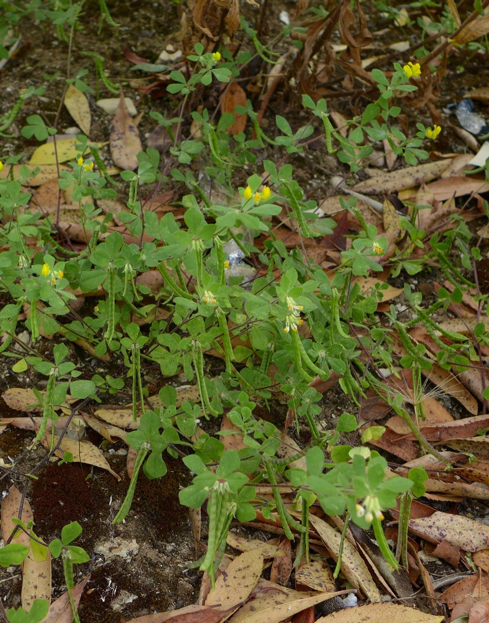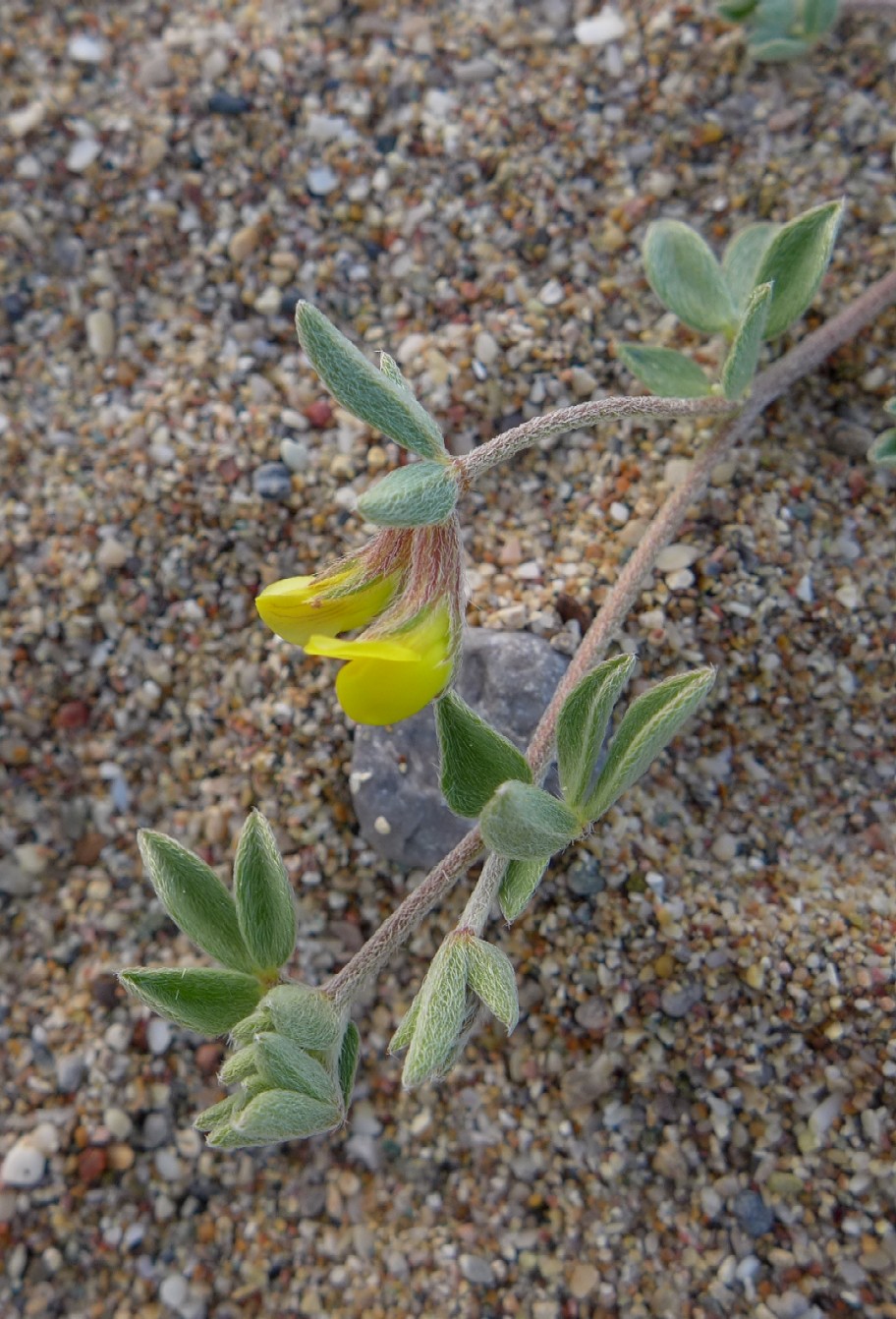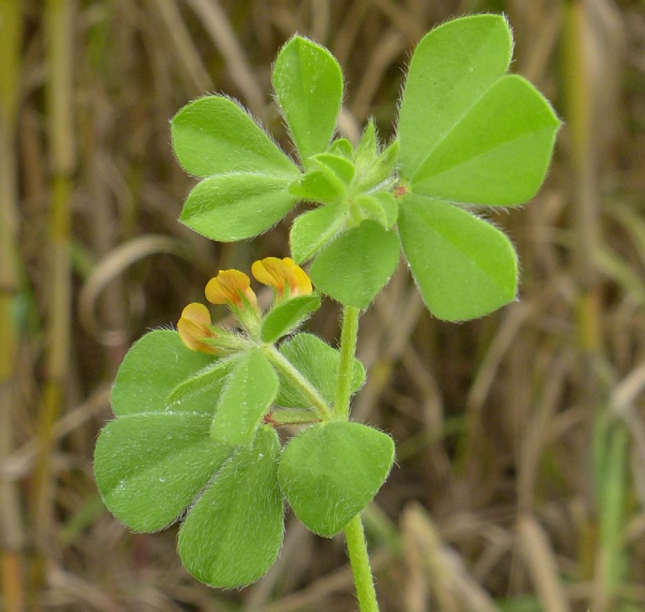 Hülsen rundlich, 10 - 30 mm lang, 1,5 breit Blätter mit 5 Blättchen, wobei die 2 unteren ca. so