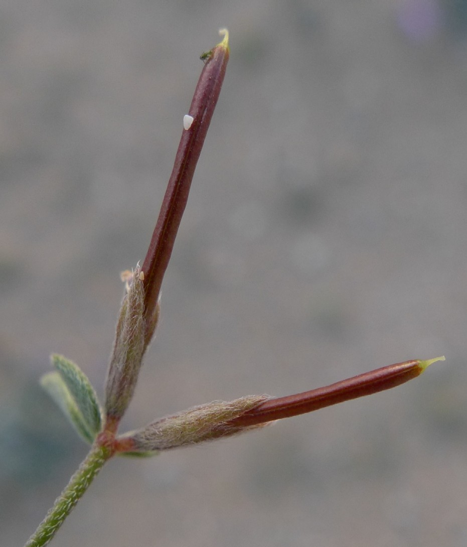 3 Hülsen +/- abgeflacht, immer eingeschnürt, Fruchtstiel ca. 1,5 mal so lang wie als das Tragblatt