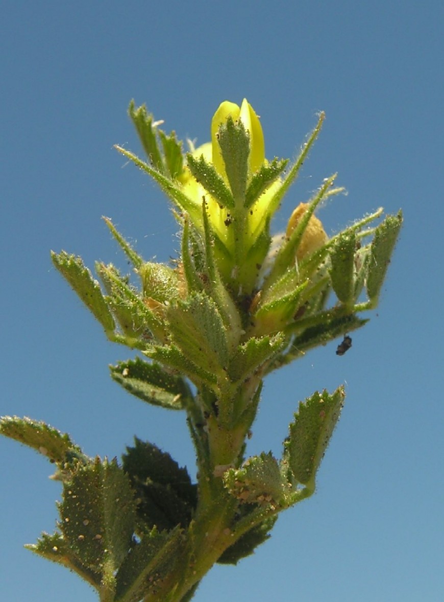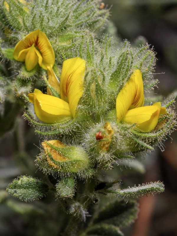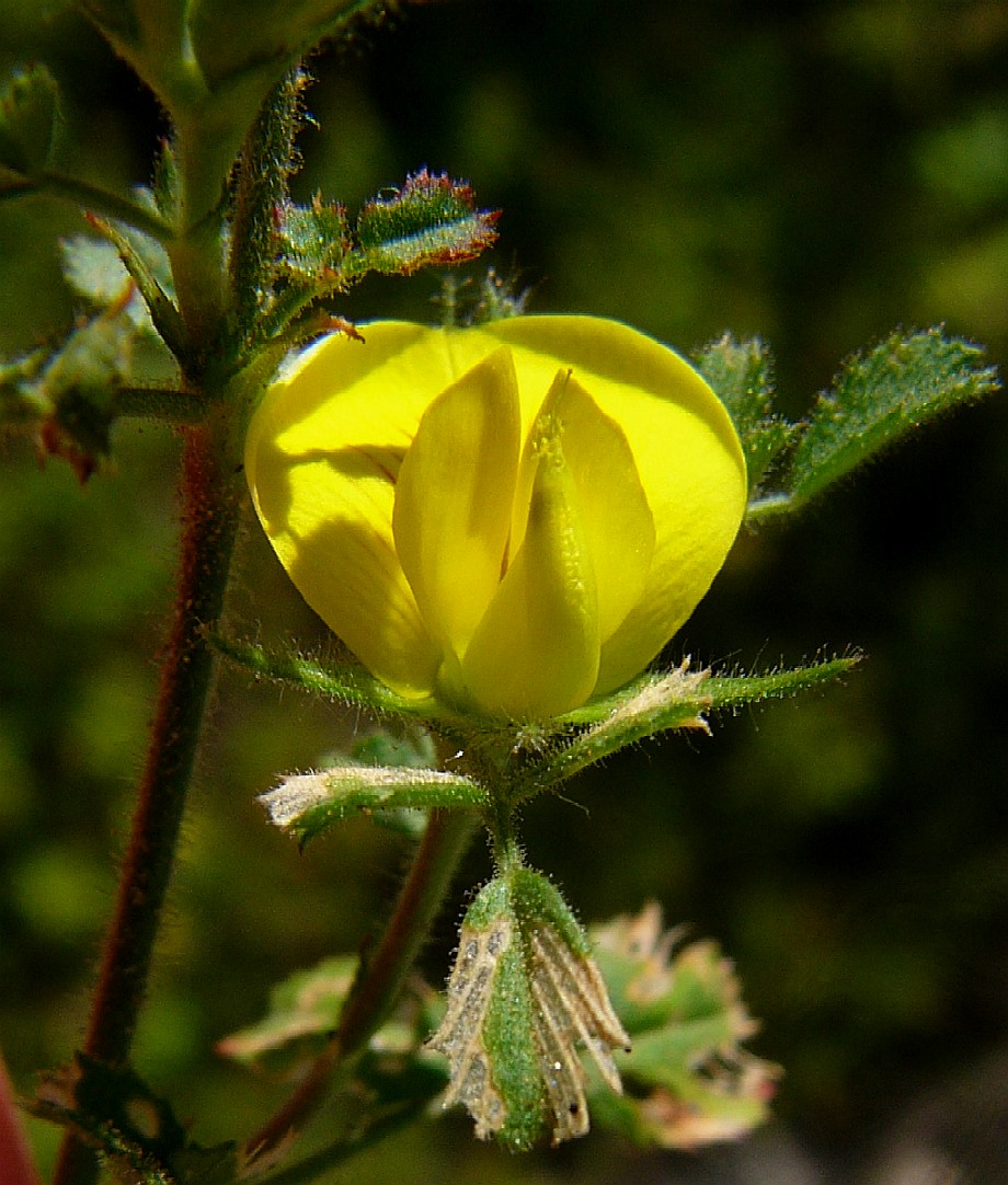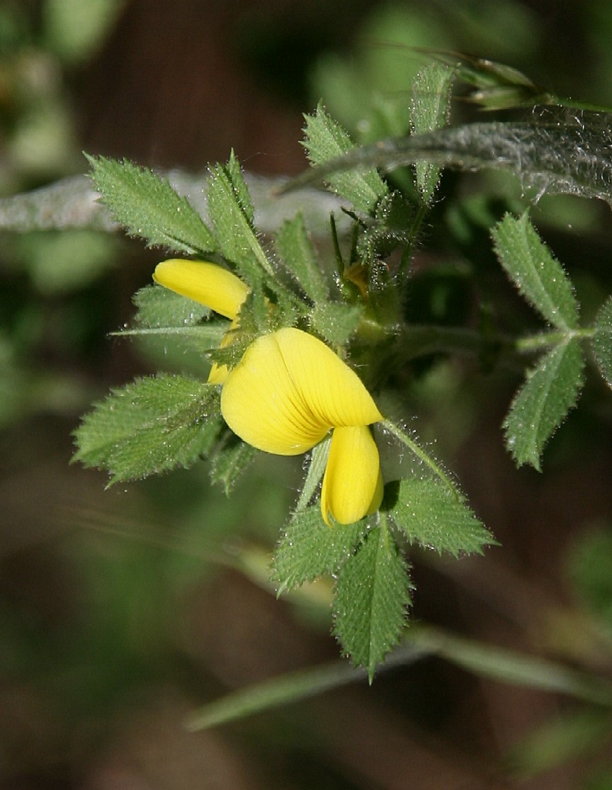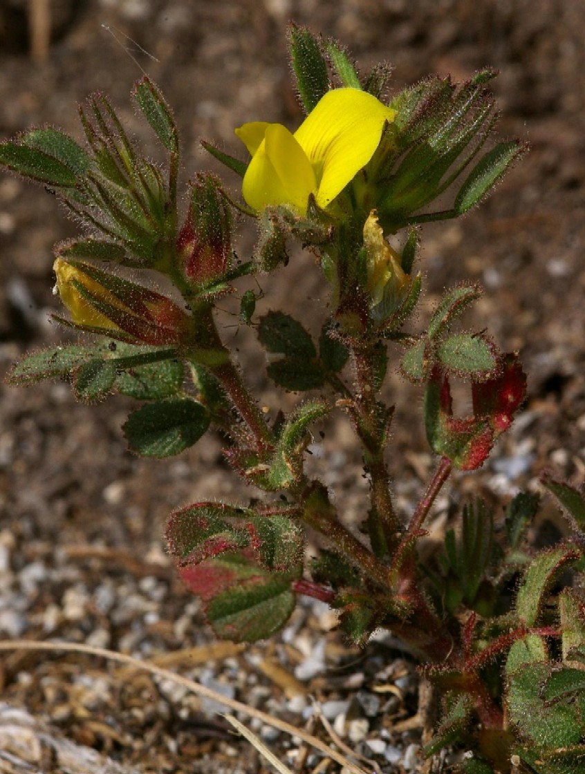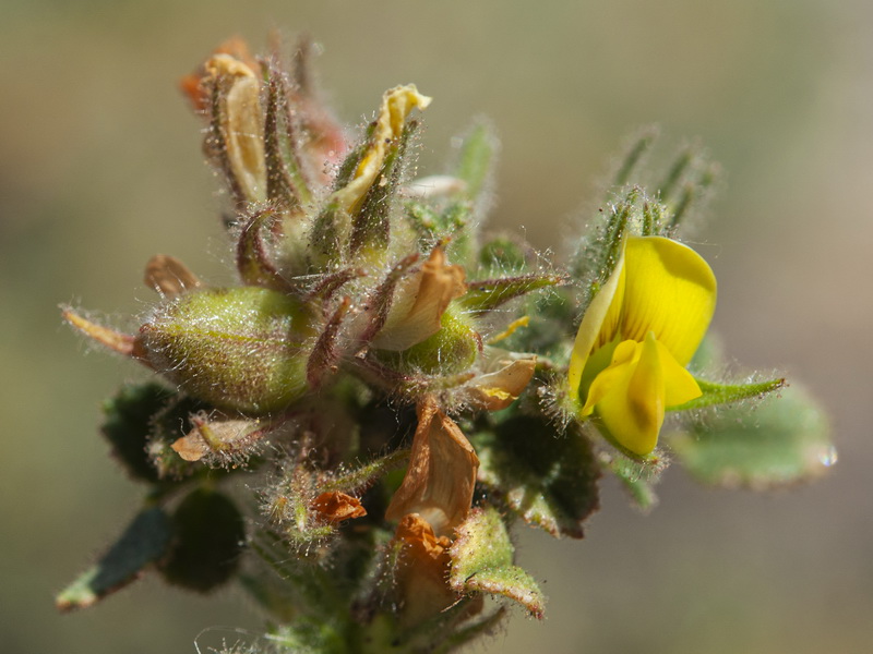Ononis- Pflanze krautig, Blüten gelb, +/- sitzend, Blätter drüsenhaarig