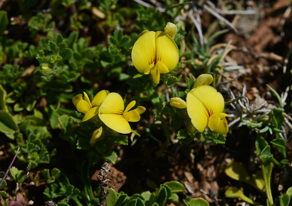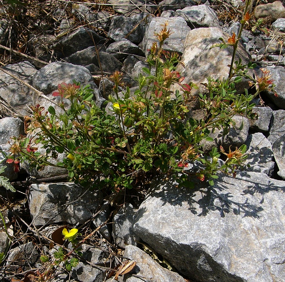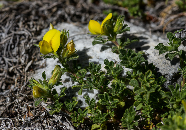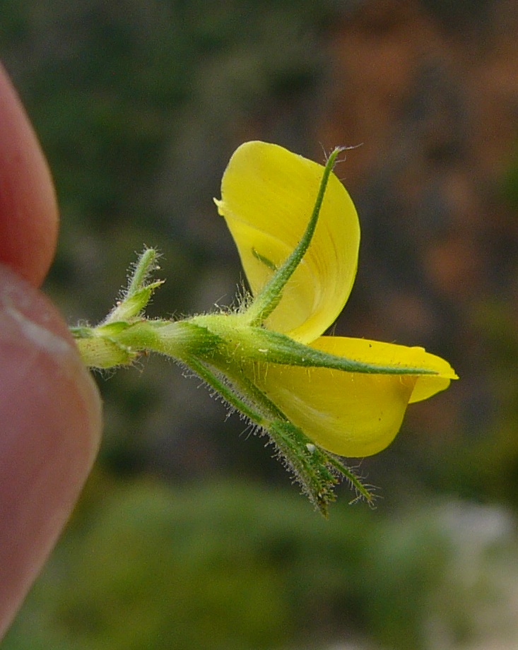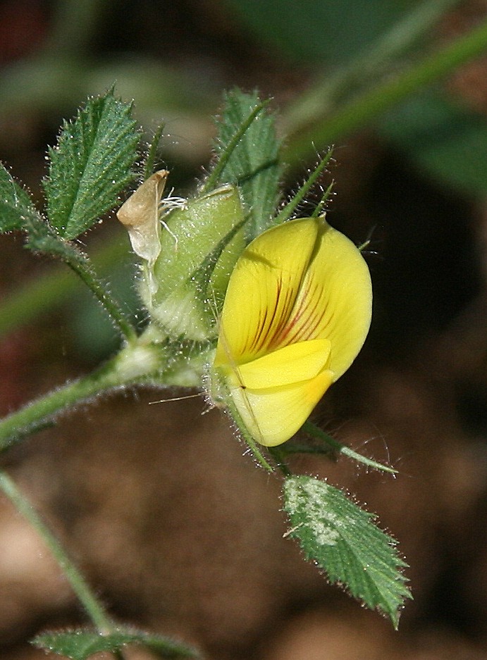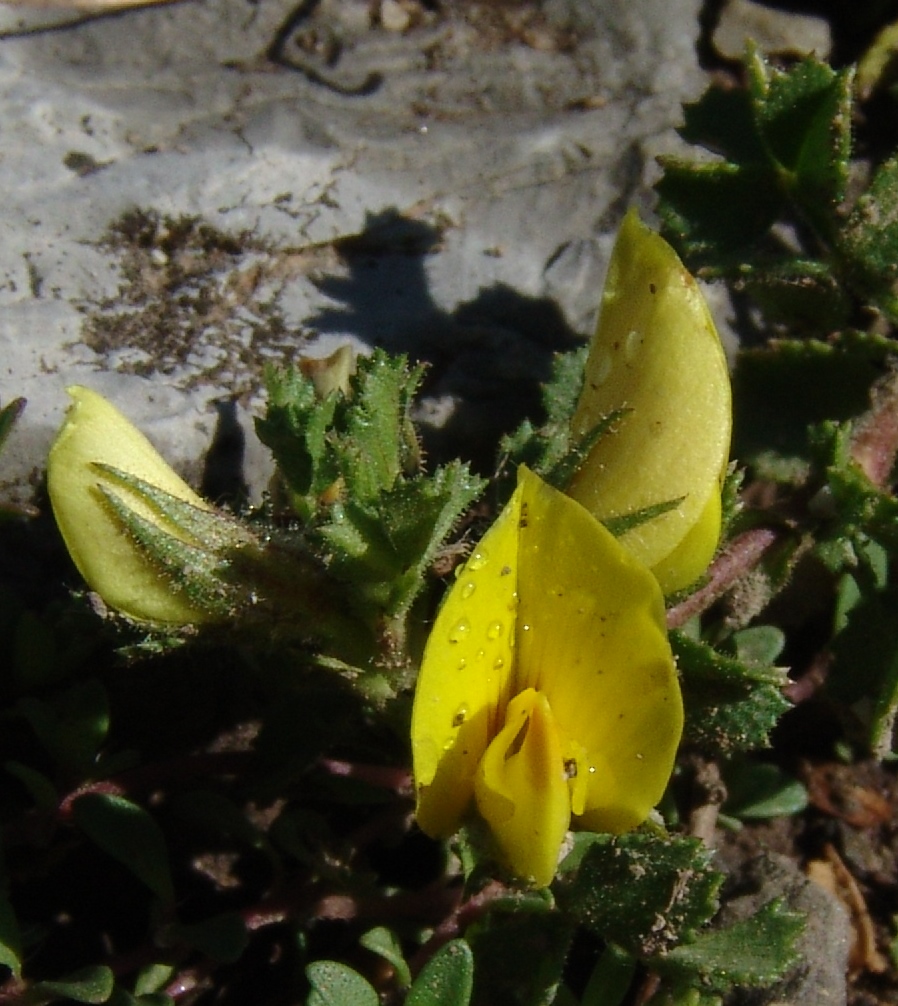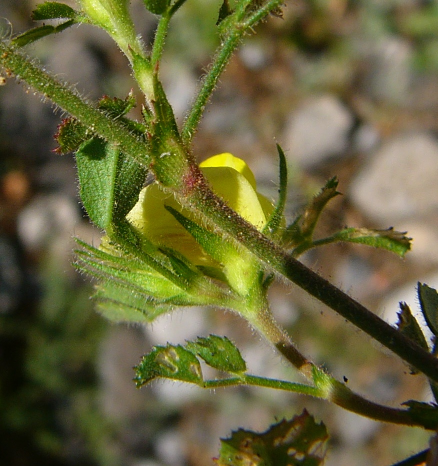 Ononis- Pflanze krautig, Blüten gelb, +/- sitzend, Blätter drüsenhaarig