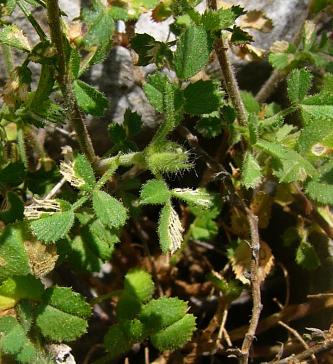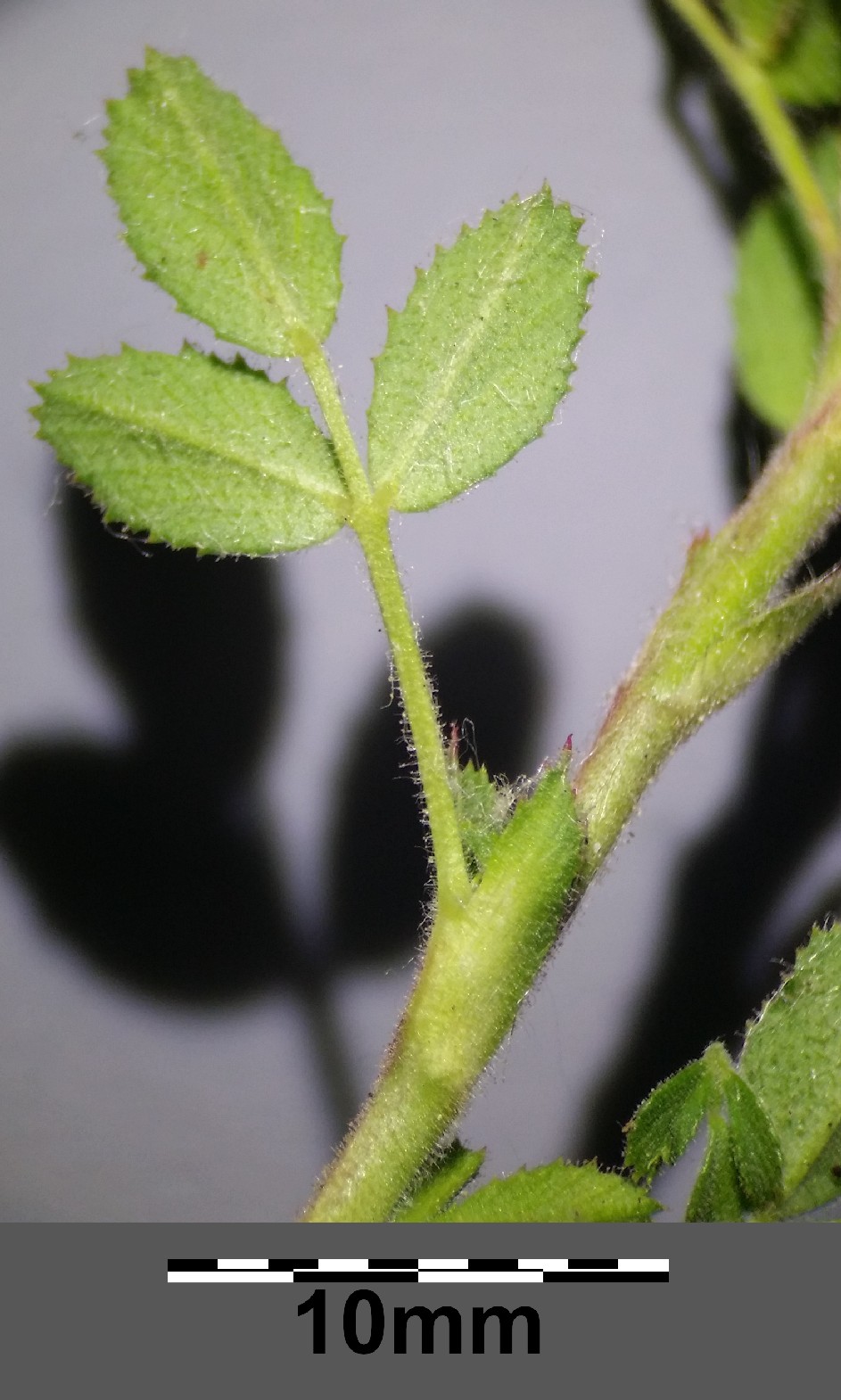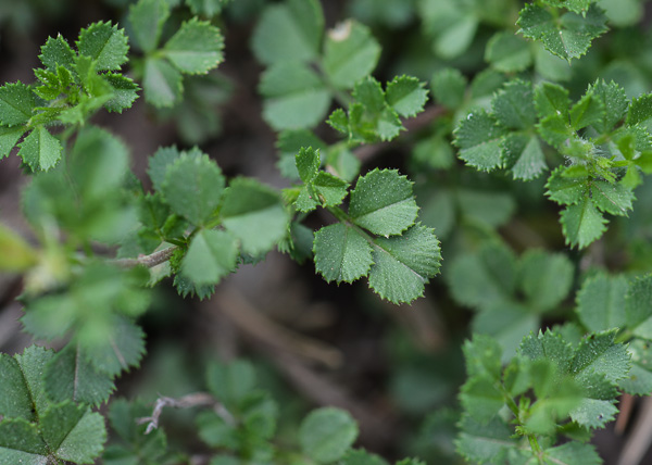 Blätter 3-zählig, drüsig, Blättchen 2 - 11 mm lang, 2 - 8 mm breit, scharf gezähnt, drüsig
