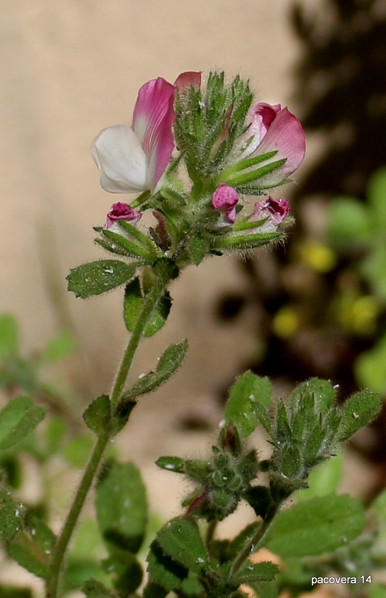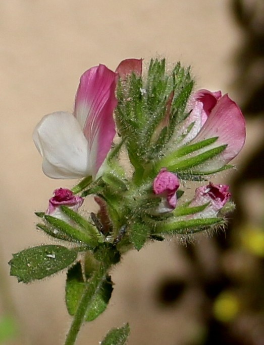Ononis - Blüten rosa, fast sitzend, in Ähren, untere Blätter gefiedert, Blättchen deutlich gezähnt