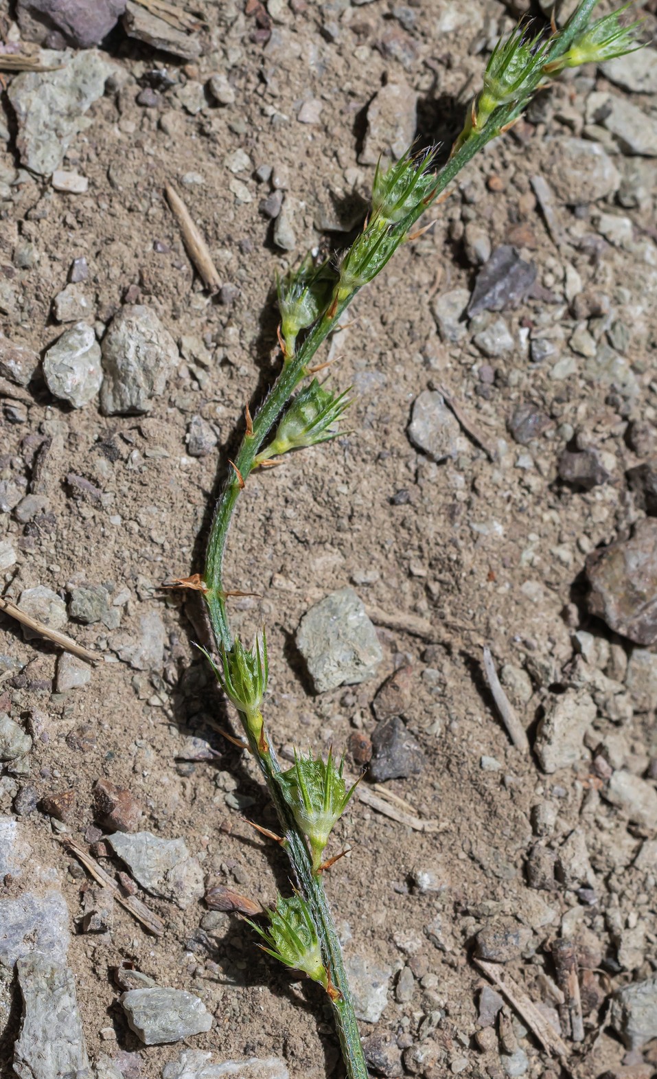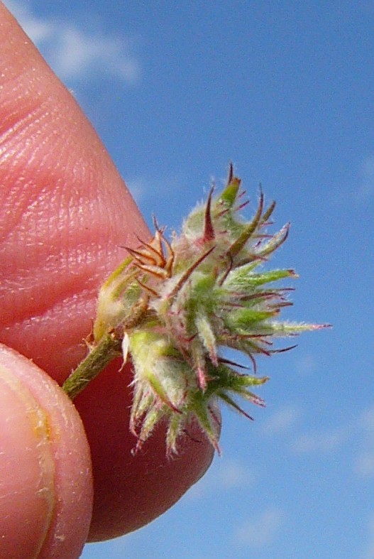 Reife Früchte 3 - 5 mm lang, mit kurzen angedrückten Haaren und langen Stacheln