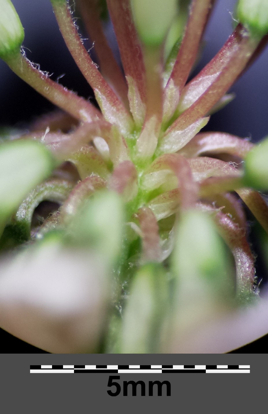 3 Blüten rosa, zur Fruchtzeit nicht zurückgeschlagen, Kelchzähne am Grund überlappend