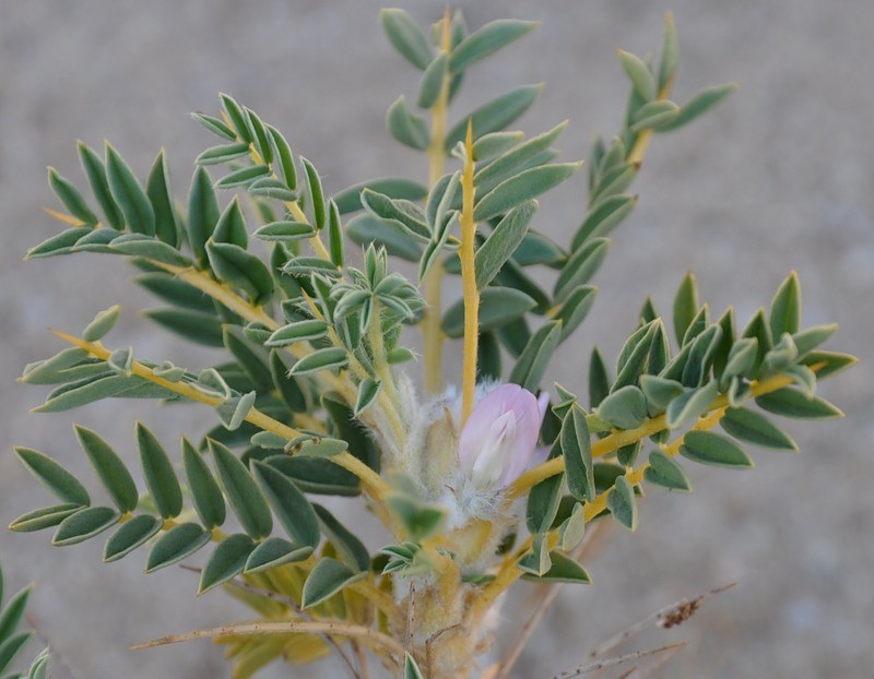 5 Blättchen beiderseits behaart, der Enddorn länger als das oberste Blättchenpaar