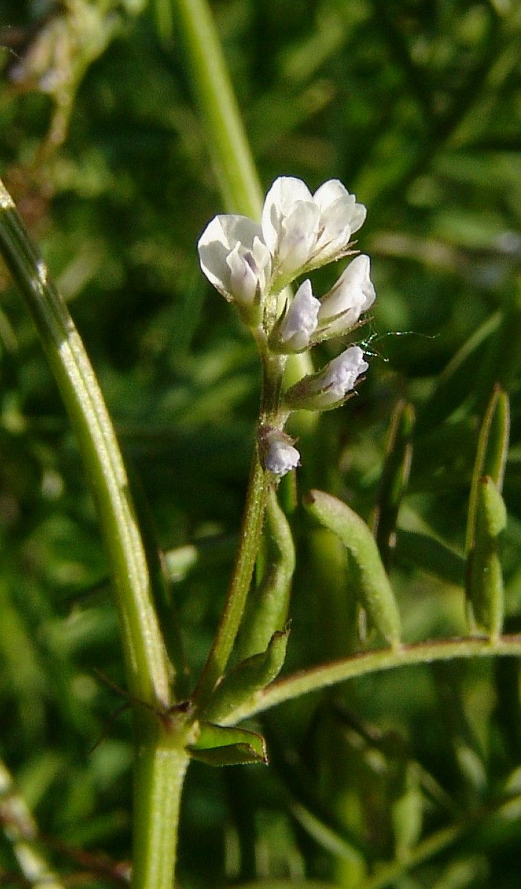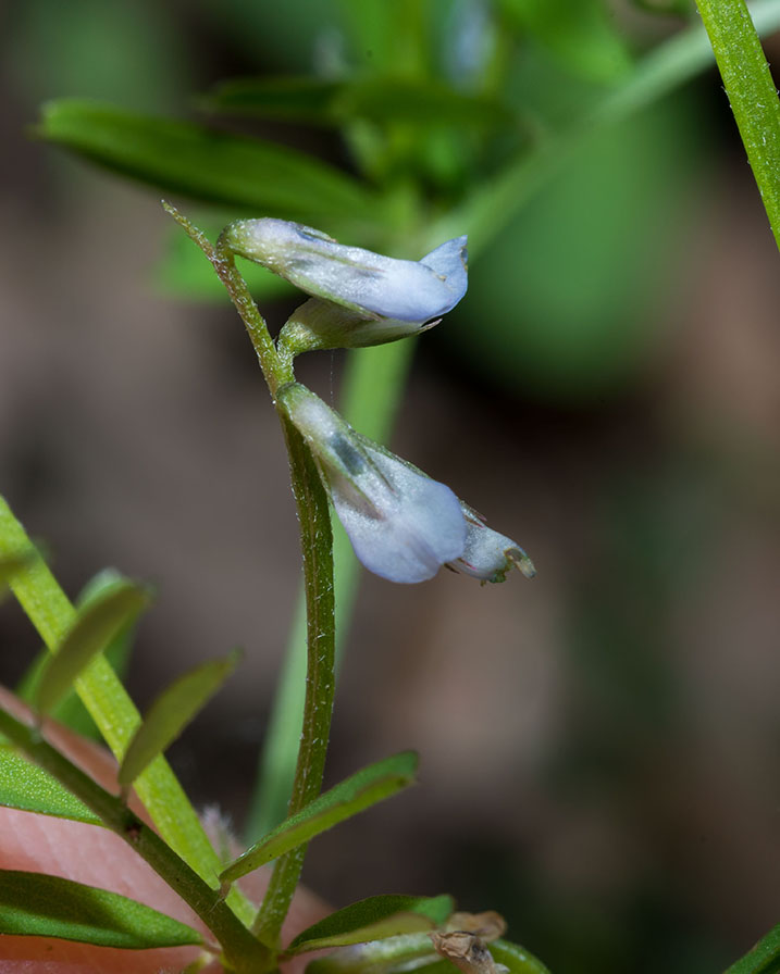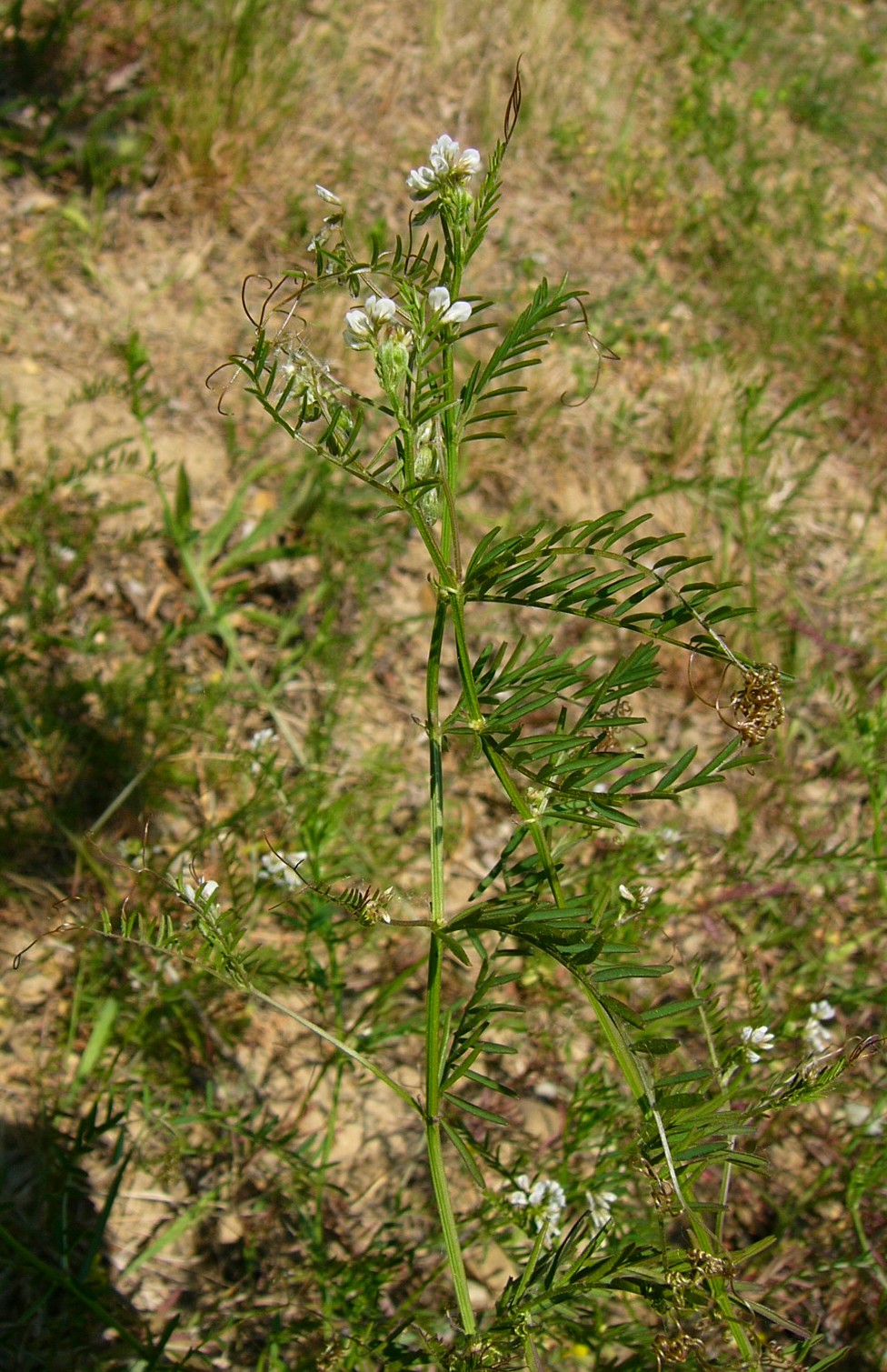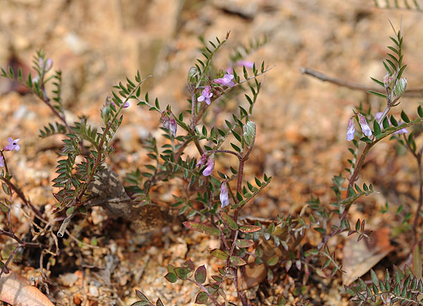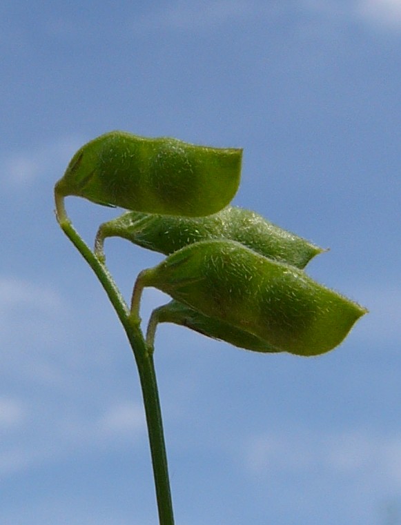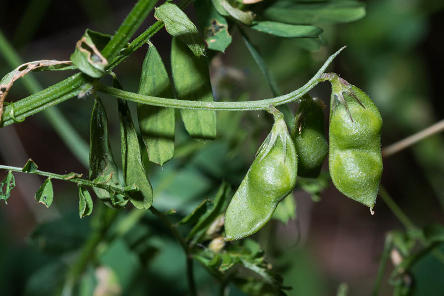 Hülse 7 - 10 mm lang, 3 mm breit, gestielt, weichhaarig, (1) - 2-samig Samen rundlich, marmoriert Stängel niederliegend oder kletternd, gefurcht Blätter mit 6 - 8 Fiederpaaren und mehrteiliger Ranke Blättchen 4 - 18 mm lang, 1 -3 mm breit, mit Spitzchen Nebenblätter mit pfriemlichen Fiederabschnitten