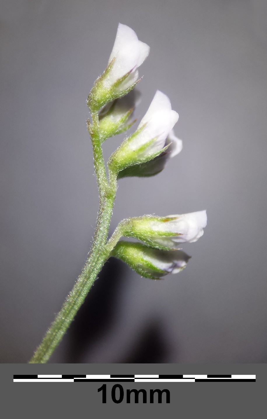 1 Blüten meist weiß, 3 - 4 mm groß, Früchte behaart