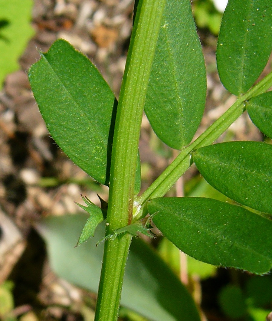 Blättchen kurz bespitzt, Nebenblätter gezähnt, Blüten groß, Blättchen