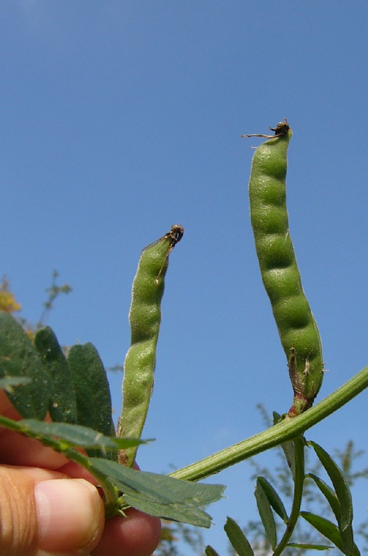 mit 1 - 3 Fiederpaaren, Blättchen vorne U-förmig ausgerandet, bespitzt Hülsen 5 - 6 mm breit > 3