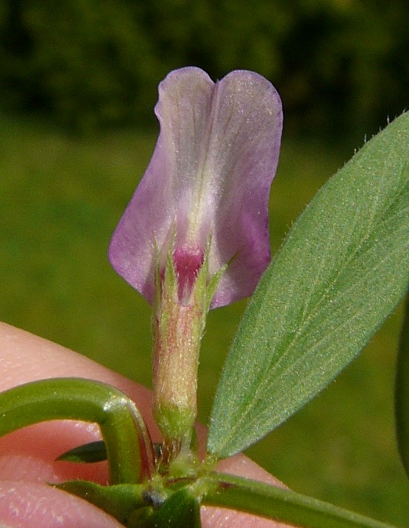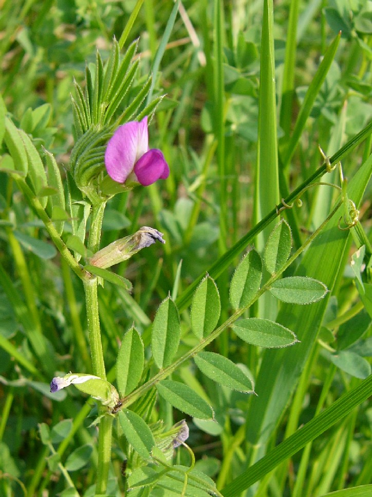 V - VII, Äcker, Ruderalstellen, Gärten Synonyme: English name: Nom francais: Nome italiano: Verbreitung in Deutschland: Gefährdung in Deutschland: Weltweite Verbreitung: Eingebürgert in: Etymologie: Beschreibung des Artenaggregats: Vergleich Vicia segetalis (links) - Vicia cordata (rechts):