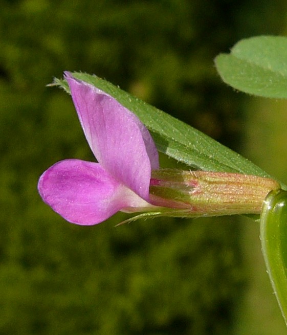 | Blättchen linealisch 2 - 3 mm breit bei voll aufgeblühte Blüten steht die Fahne meist im 90°- Winkel ab Vorderseite und Rückseite der Fahne gleichfarbig rosa > 3
