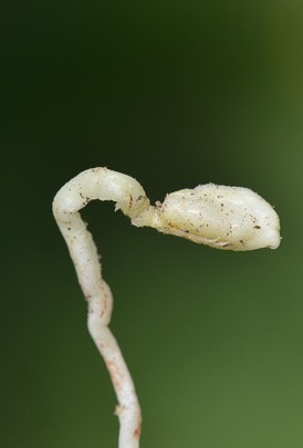 Pflanze mit unterirdischen Trieben, die weiße Blüten oder Hülsen besitzen