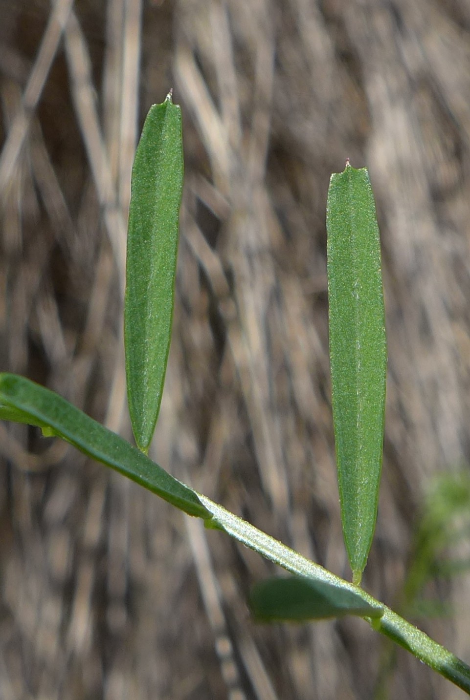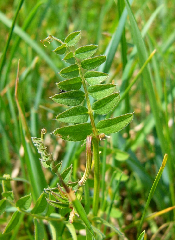 Blättchen länglich- eiförmig, behaart, mit Ranke, oft auch gegeneinander versetzt