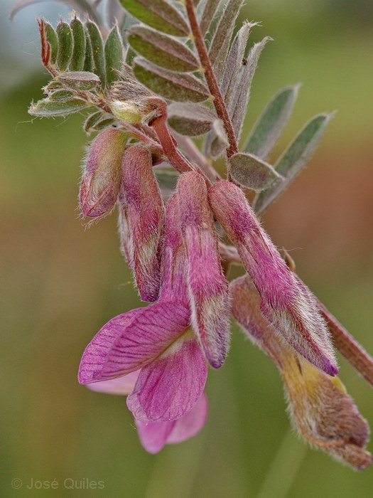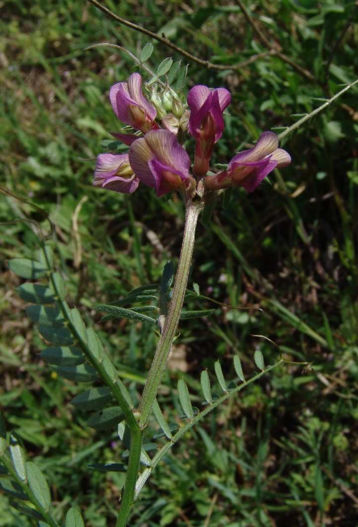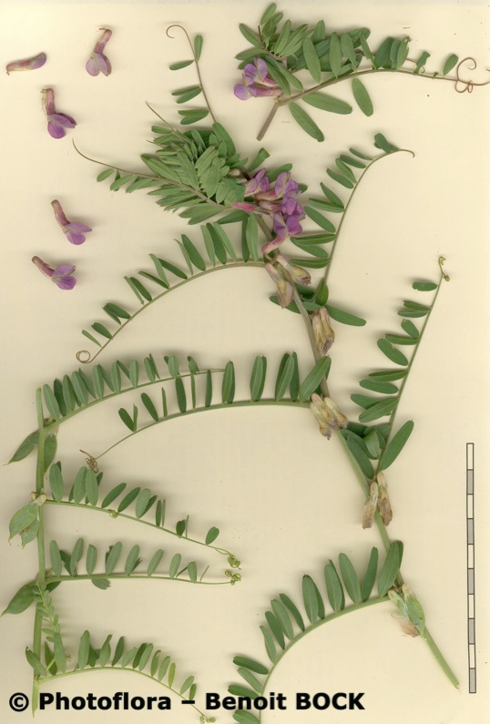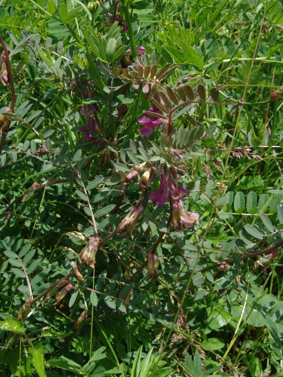 Vicia - Blüten schmutzigviolett, am Rücken behaart, Blätter 7 - 9 Fiederpaaren, Blütenstände kurz gestielt