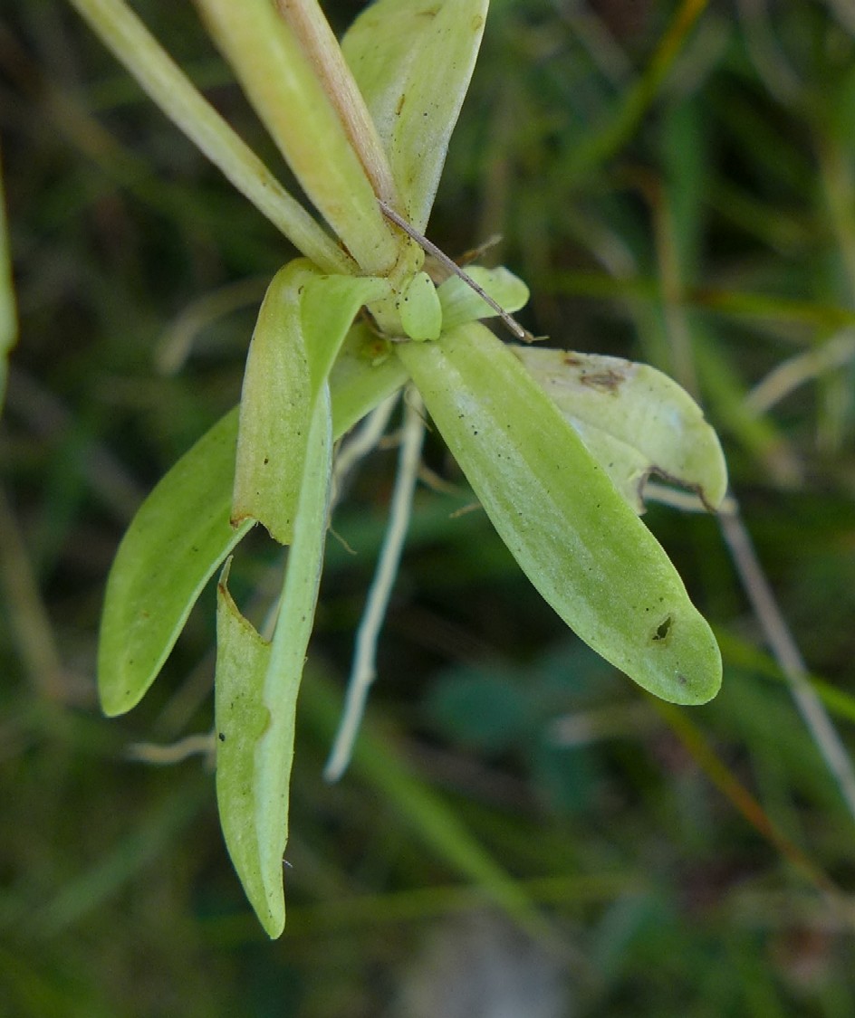 Unterste Stängelblätter lineal- spatelförmig, max. 5 mm breit, stumpf, eine Rosette bildend