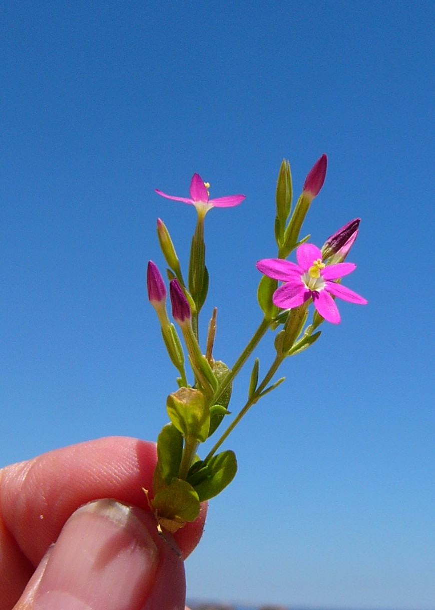 Blüten 8 - 12 mm, Kronblätter rot, oft schlank, Narbenlappen dreieckig