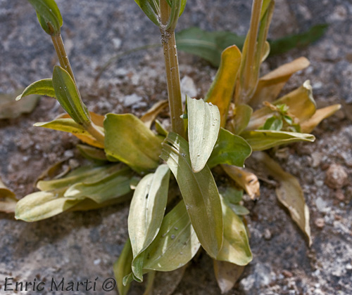 Kapsel wenig länger als der Kelch Stängelblätter länglich- elliptisch, 15 - 60 mm lang, 4 - 12 mm breit, stumpf, 3- nervig Rosette zur Blütezeit vorhanden, Rosettenblätter elliptisch, 20 - 60 mm lang, 6 - 25 mm breit,