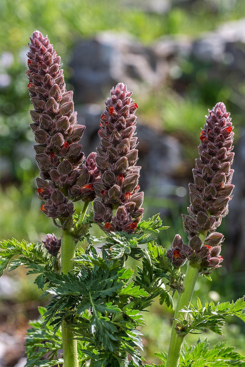 Blüten in den Achseln von braunen zugespitzten Hochblättern,