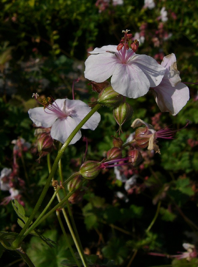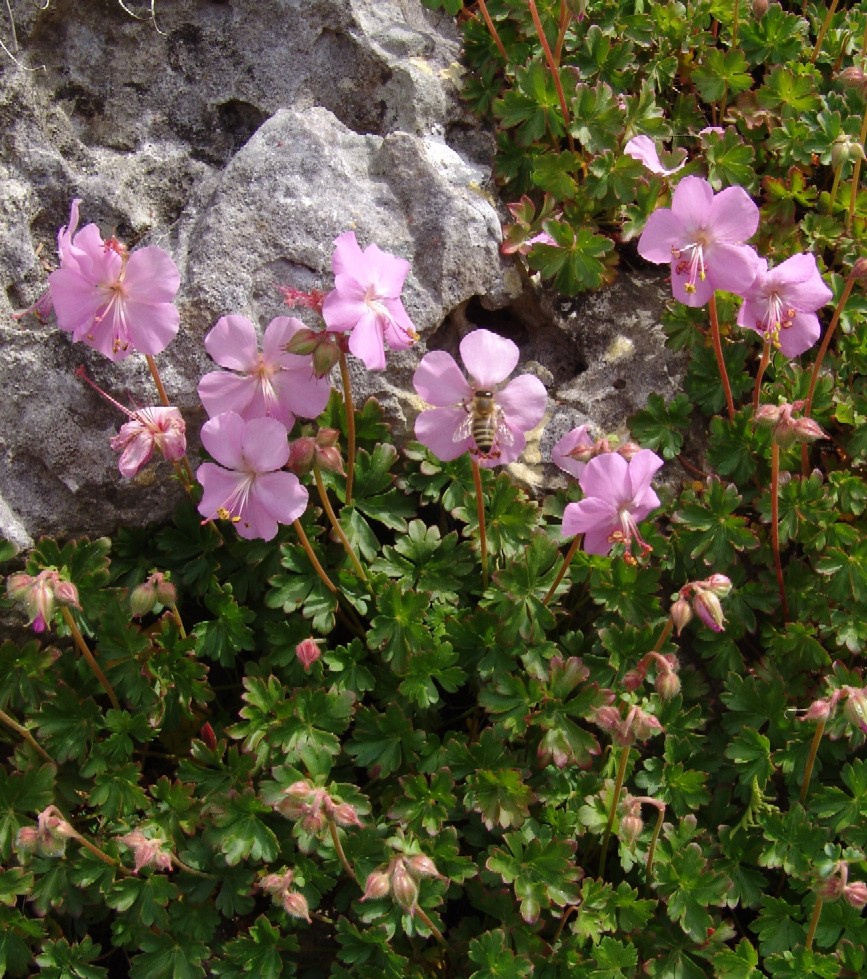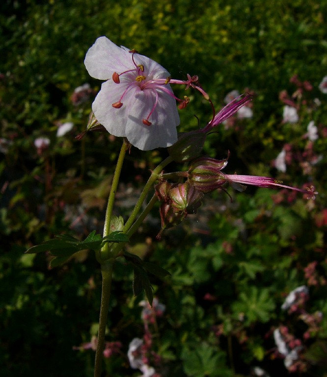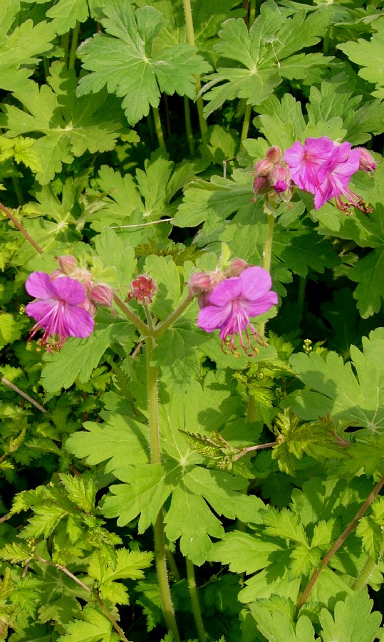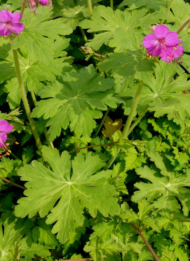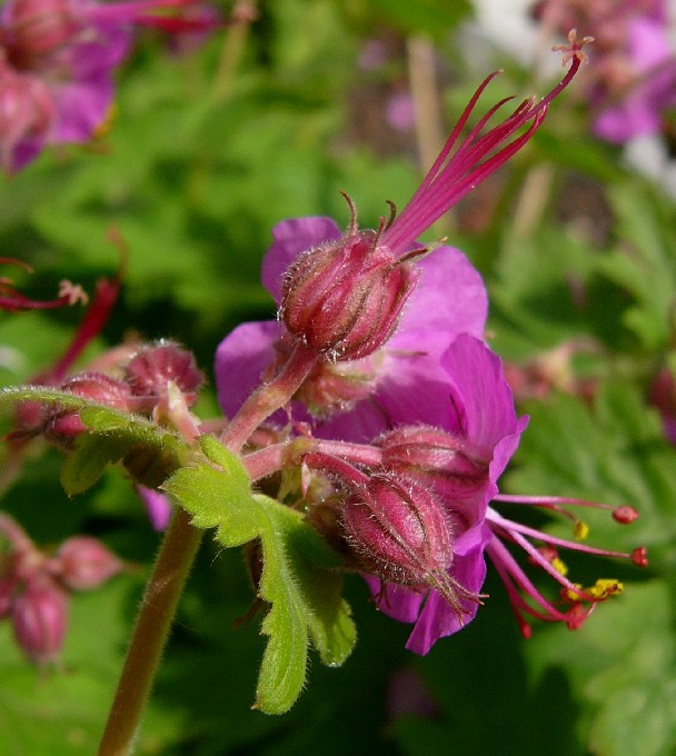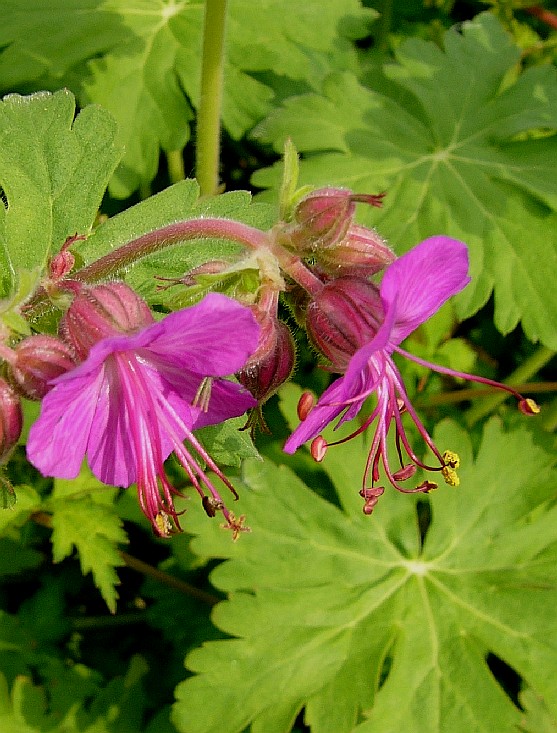 Storchschnäbel mit großen Blüten und langen Staubblättern, Blätter gelappt oder zerschlitzt