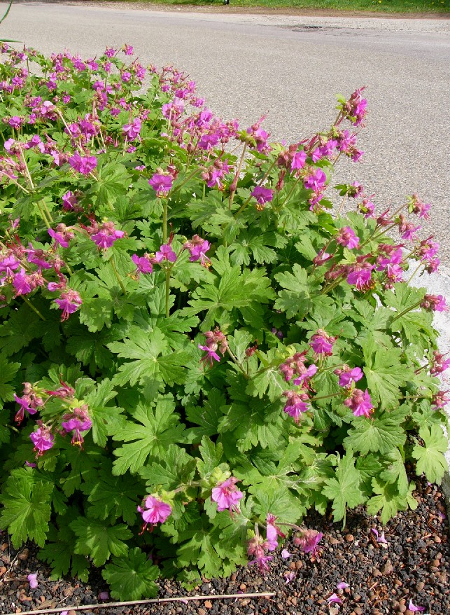 in: Die sehr ähnliche Art Geranium kikianum hat zurückgebogenen Kronblätter. Die Kronblätter und der Nagel von Geranium macrorrhizum sind außerdem deutlich breiter. Der Felsen- Storchschnabel wird oft als Unterpflanzung von Straßenbäumen verwendet, da er sehr robust ist und mit seinem dichten Wachstum Unkräuter nicht aufkommen lässt. Aufgrund des intensiven Geruches meiden Hunde diese Pflanze. |