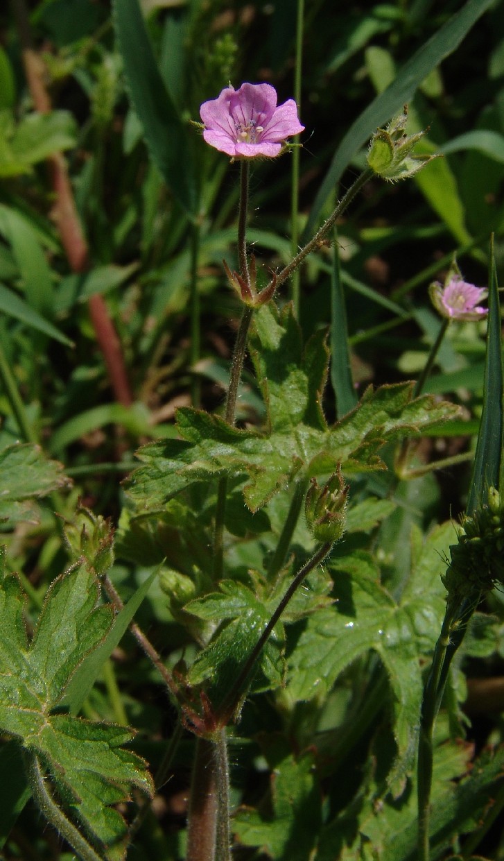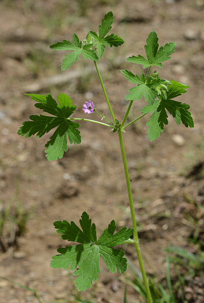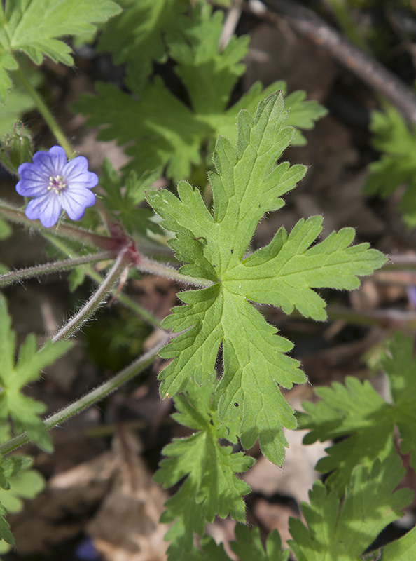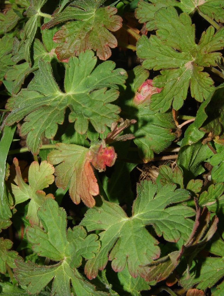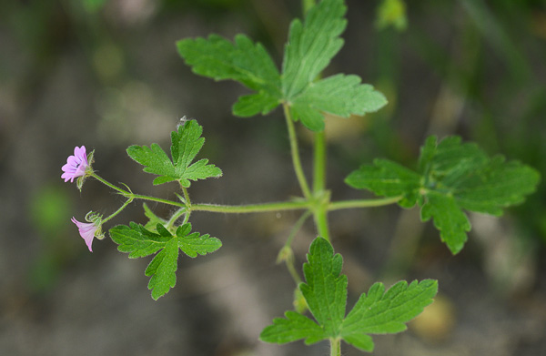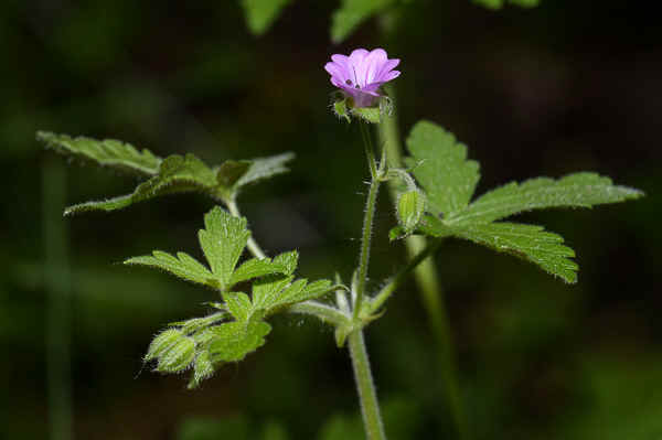 Storchschnäbel mit kleinen Blüten, gelappten Blättern und begrannten, nicht gekielten Kelchblättern