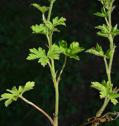 Früchte gekielt, kurzhaarig, Fruchtklappen leicht querrunzlig Stängelblätter tief 5- 7 lappig, kurz fiederschnittig