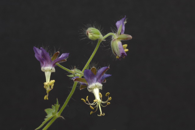 10 - 15 mm lang, trüb schwarz-violett, oder Blüten rosa bis helllilablau Blütenstiele und Kelch mit kurzen Haaren und langen