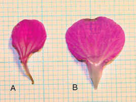 2 Kronblätter rosa, braun oder violett, nicht genagelt