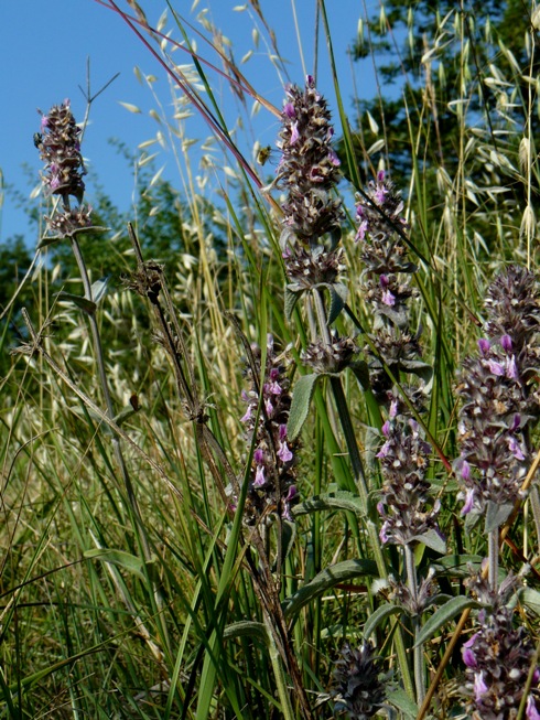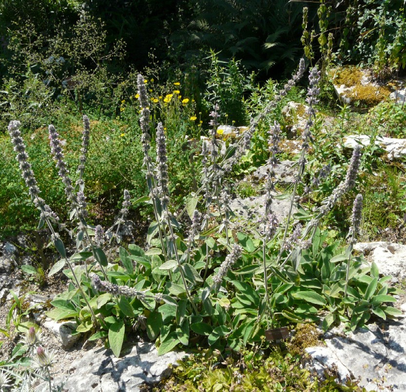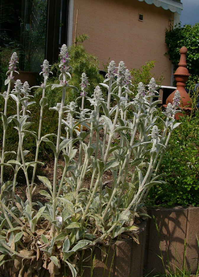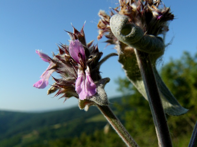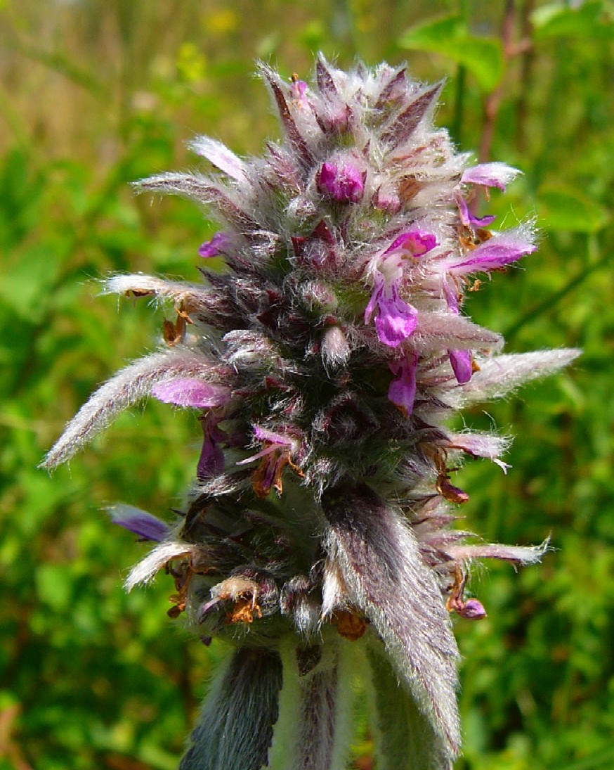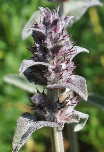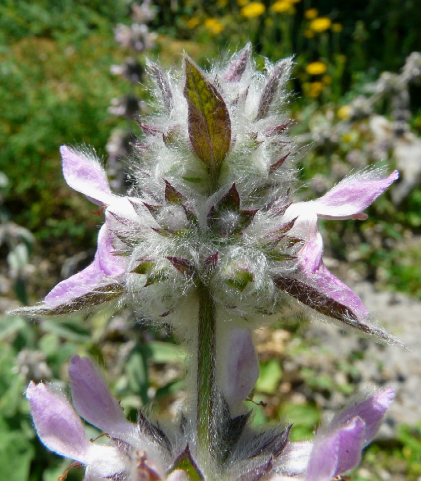 Stachys- Pflanzen +/- krautig, Blüten rot, Stängel wollig, Obere Quirle bilden eine lange Scheinähre