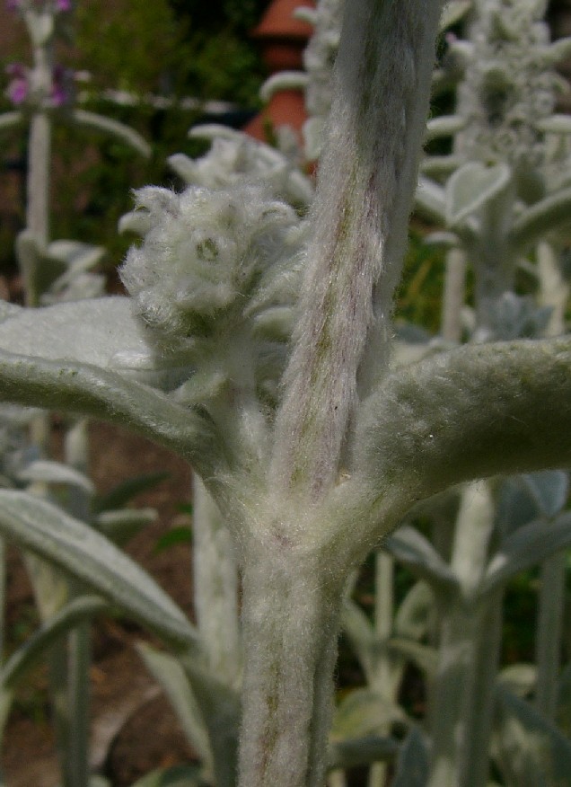 3 Grüne Blattfläche unter der wollig- filzigen Behaarung nicht sichtbar