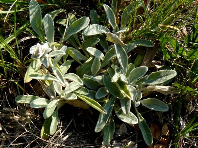 Blätter eilanzettlich, 30 - 60 mm lang, 10 - 20 mm breit, dicht weißfilzig